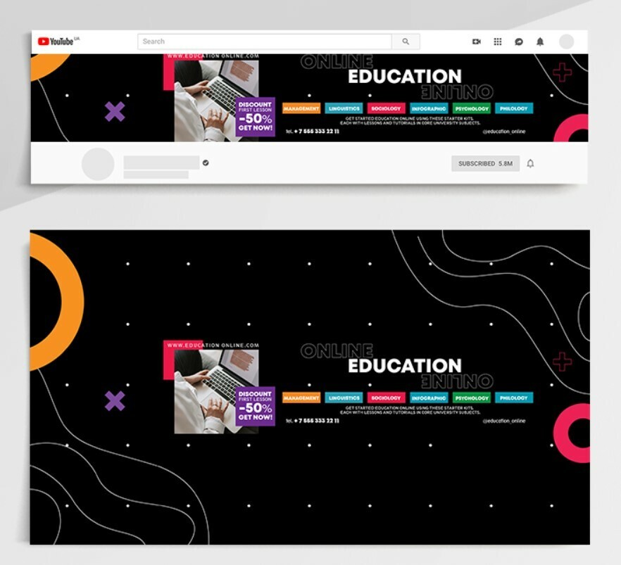Don’t miss this amazing colorful Youtube template dedicated to Educational events. It’s suitable for online studying, classes, and school promotion. Feel free to download!