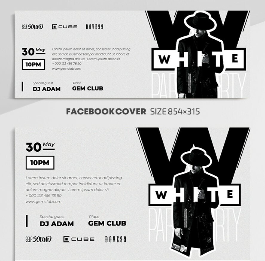 Pay attention to these White Party templates for Facebook. You can use it to announce an event with a dress-code or invite guests. Feel free to download!